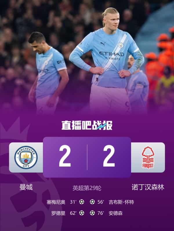 03月05日讯 英超第29轮,志在争冠的曼城在保级队身上栽跟头,本轮被诺丁汉森林逼平送出关键积分。另一边,阿森纳虽踢得惊险,但还是成功战胜布莱顿,成功收下三分。